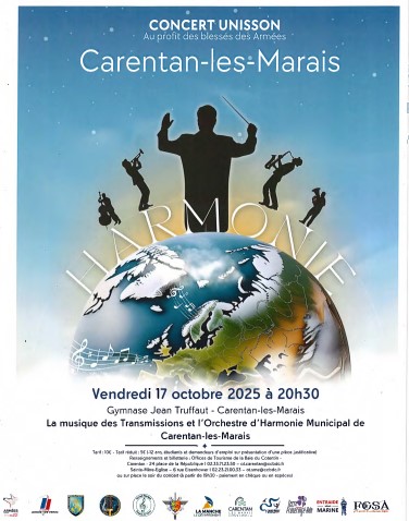 La musique des transmissions donnera un concert de sa tournée Harmonie à 20h30 au Gymnase Jean Truffaut. Elle se produira avec l’orchestre d’harmonie municipale de Carentan.