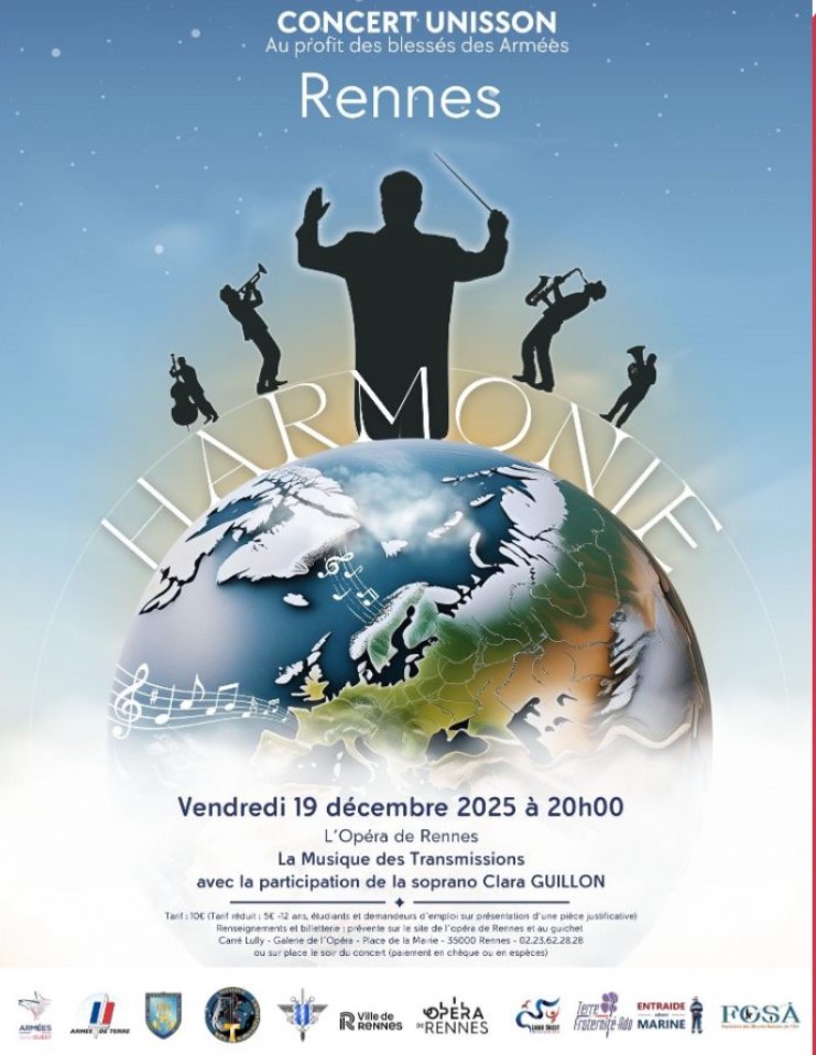 Pour nos suiveurs vivant dans la région de Rennes : si vous souhaitez prendre une petite respiration entre travail et courses de Noël, pourquoi ne pas aller assister au concert de la musique des transmissions et de la soprano Clara Guillon vendredi 19 décembre à 20h00 à l’Opéra de Rennes ?