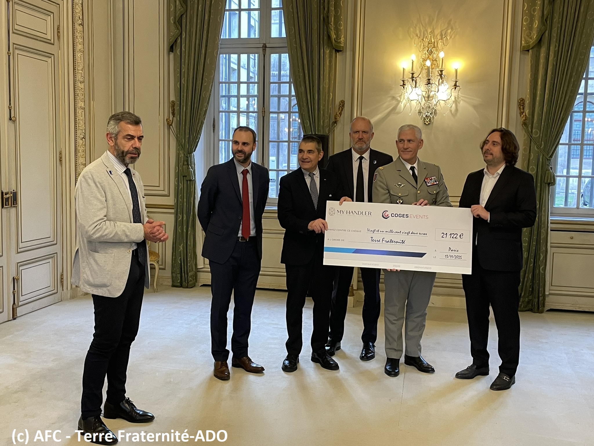 La délégation du COGES, menée par le GDI (2S) Charles Baudouin, son directeur, a ainsi remis un magnifique chèque de 21 122 € à notre association, dans le cadre prestigieux des salons du Gouverneur militaire de Paris, que nous remercions encore pour son chaleureux accueil.