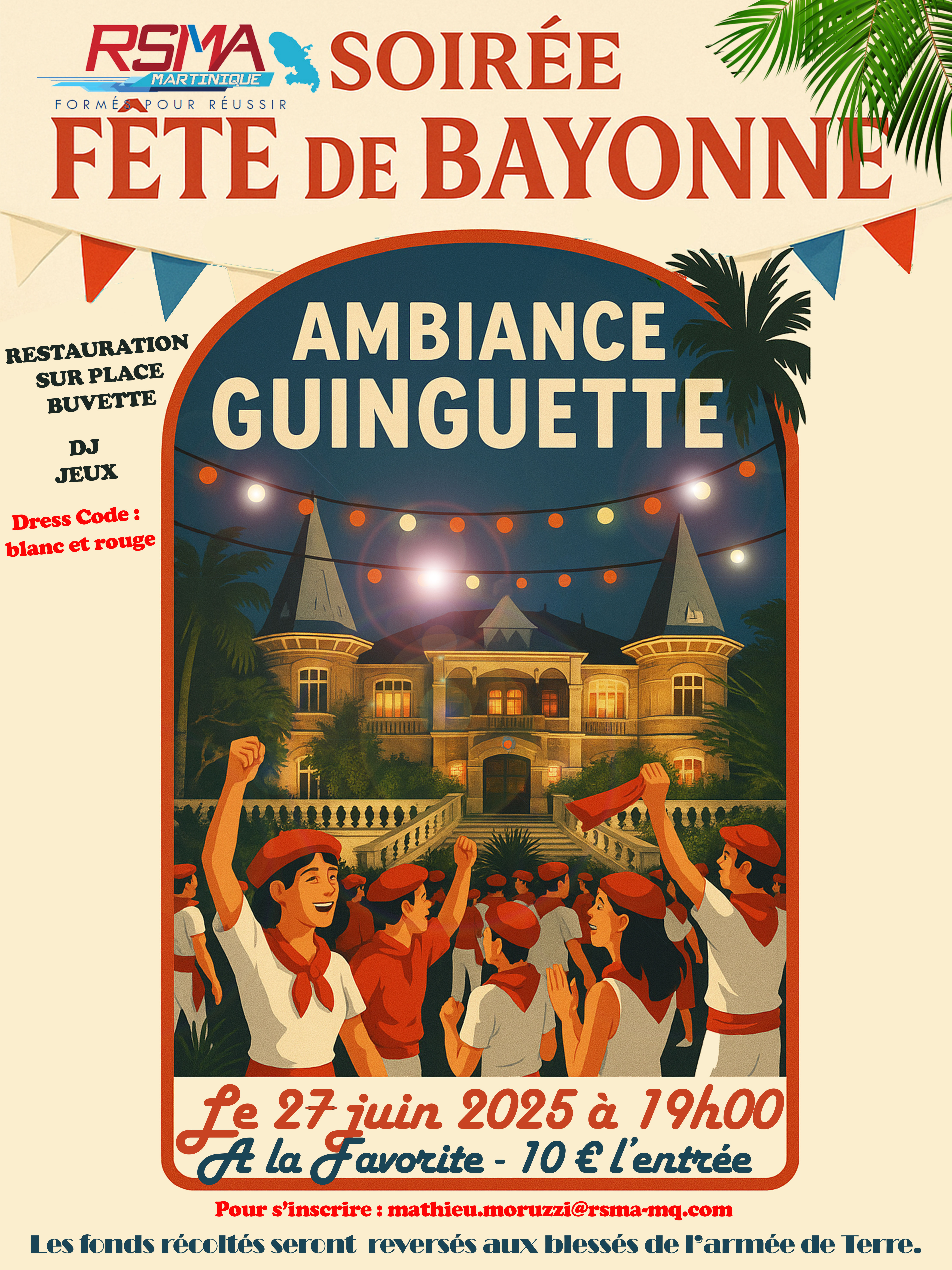 Dans le cadre de l’opération #avecnosblessés, le RSMA-M a organisé deux activités : une ascension de la Montagne Pelée (avec mise en place pour inciter les gens à envoyer des dons) et une grande soirée de gala sur le thème des Fêtes de Bayonne le 27 juin. Cette soirée a été pensée, organisée et réalisée par le personnel du SMA lui-même. Au total, environ 3 400 € ont ainsi été récoltés, prouvant que la devise de l’unité (« La réussite par l’effort et le travail ») est véritablement appliquée au quotidien !